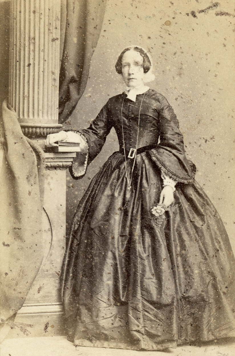 The name “L.C. Pike” is written on the back of this carte-de-visite. Generally a name on the back of a portrait refers to the sitter, but not always, so it’s important to try to find corroborating information. I searched on Ancestry for an L.C. Pike who was about forty years old in the early 1860s and living in Cork, Ireland. Only one came up, so I’m optimistic she may be the right person.