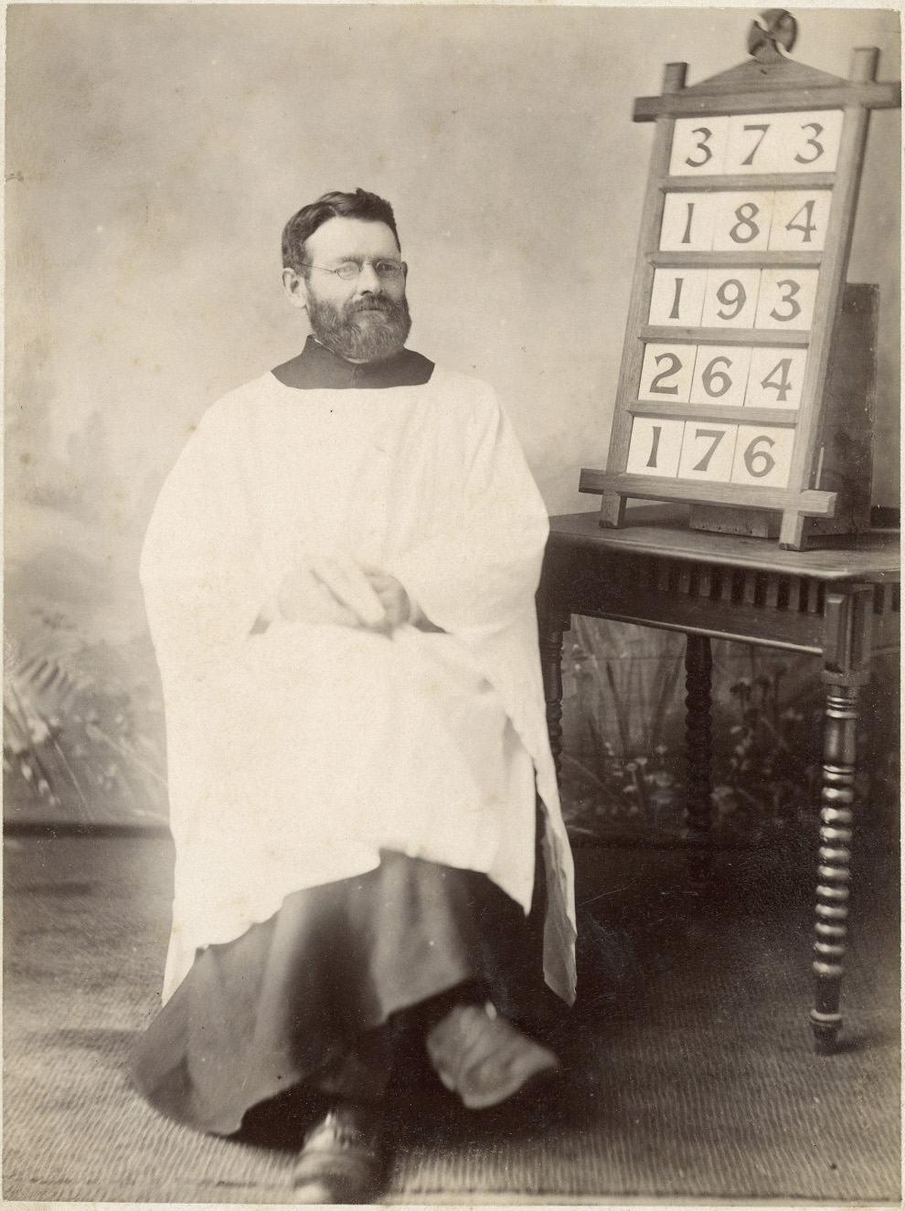 The hymnboard is certainly an interesting and unique prop. I imagine the sitter turning up to the studio with it in hand, intent on directing exactly how the resulting image should appear.