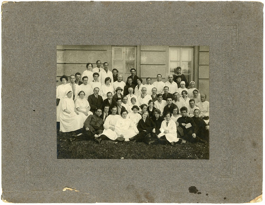 The clothing seems to point to quite a mix of people: medical, military, volunteers of no particular background. That makes sense to me, because there would have been a need for workers of all sorts. When I was working at the hospital in Liberia, that was the way it was. If there was a job that needed doing, the point was to do it, regardless of credentials, training, and so on. Highly educated people occasionally took on the most menial tasks, and those with no education at all rose to every sort of occasion. A strange combination of exhaustion, pride, and determination usually emerges, as I’m sure it did in the Russia of this time.