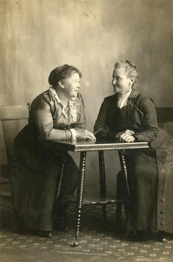This portrait was probably taken in the 1920s (see comment by my dream walden below). The sitters aren't identified. They're dressed identically, but I don't know if their clothing can tell us anything about them. A stamp on the mat below the photo tells us the studio belonged to a photographer named Hanson: The mat... Continue Reading →