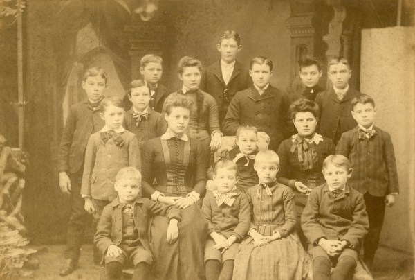 This albumen print on cardboard came from the area around Ithaca, New York, but could have originated elsewhere. The children appear to be a few years apart in age, with the oldest standing at the back. Two young women appear slightly older and might be teachers. They sit in the middle row with a little... Continue Reading →