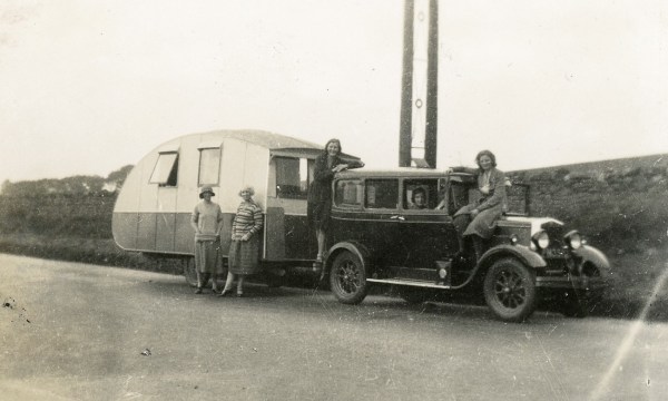 This small snapshot came from England, but with no information about who's in it or where it was taken. Notice the can of Shell gas on the running board below. These gals were prepared. The camper (called a caravan in the UK) is a Car Cruiser model from the 1920s. You can see a... Continue Reading →